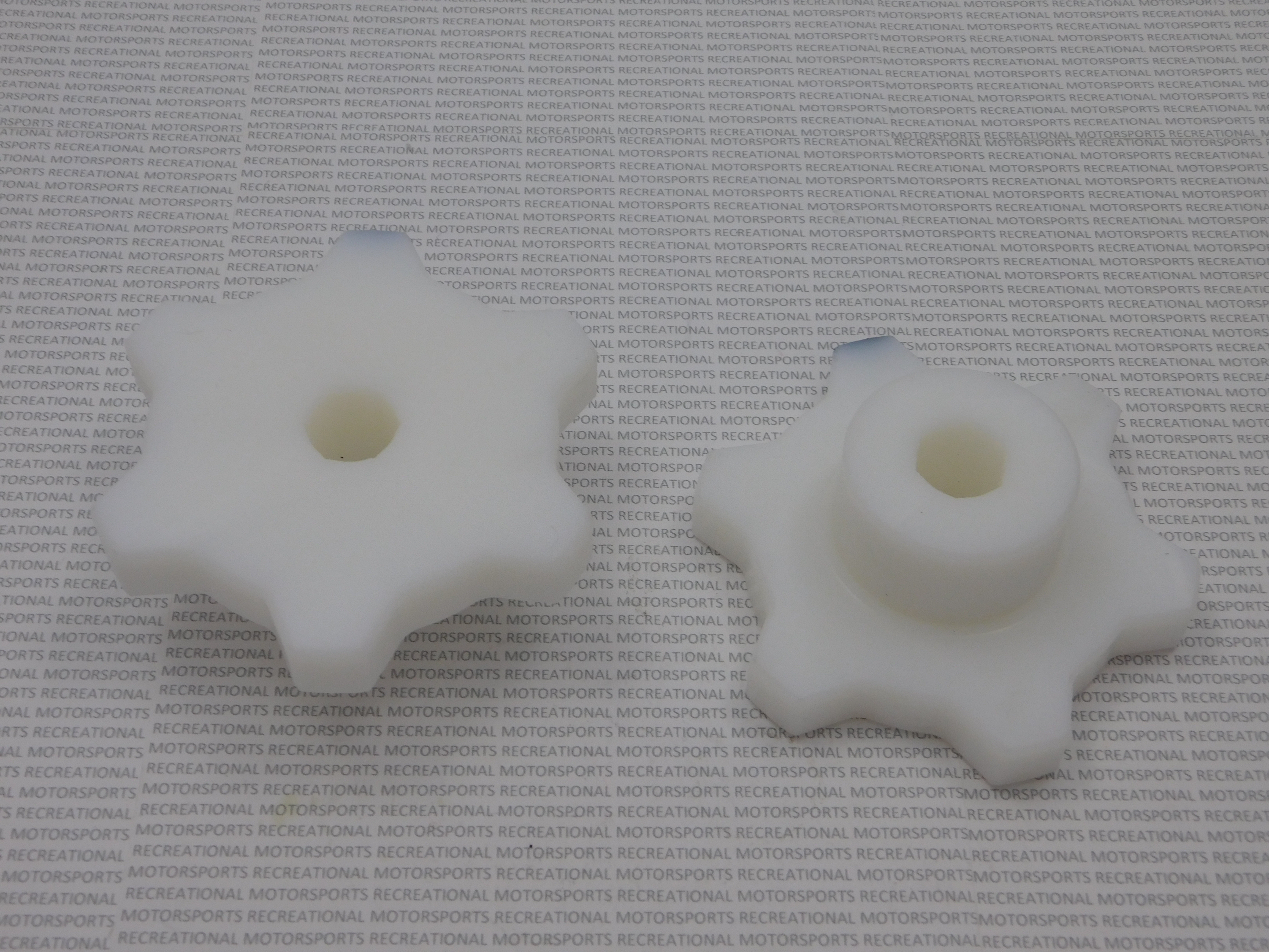 Our new 6-tooth drivers replace your stock 5-tooth invulute drives. It is designed to drive off the track clips instead of the lugs, which reduces track damage when using high horsepower engines. They also reduce track rolling resistance which equals more speed using less power (not legal for stock class racing.) Shaft not included.