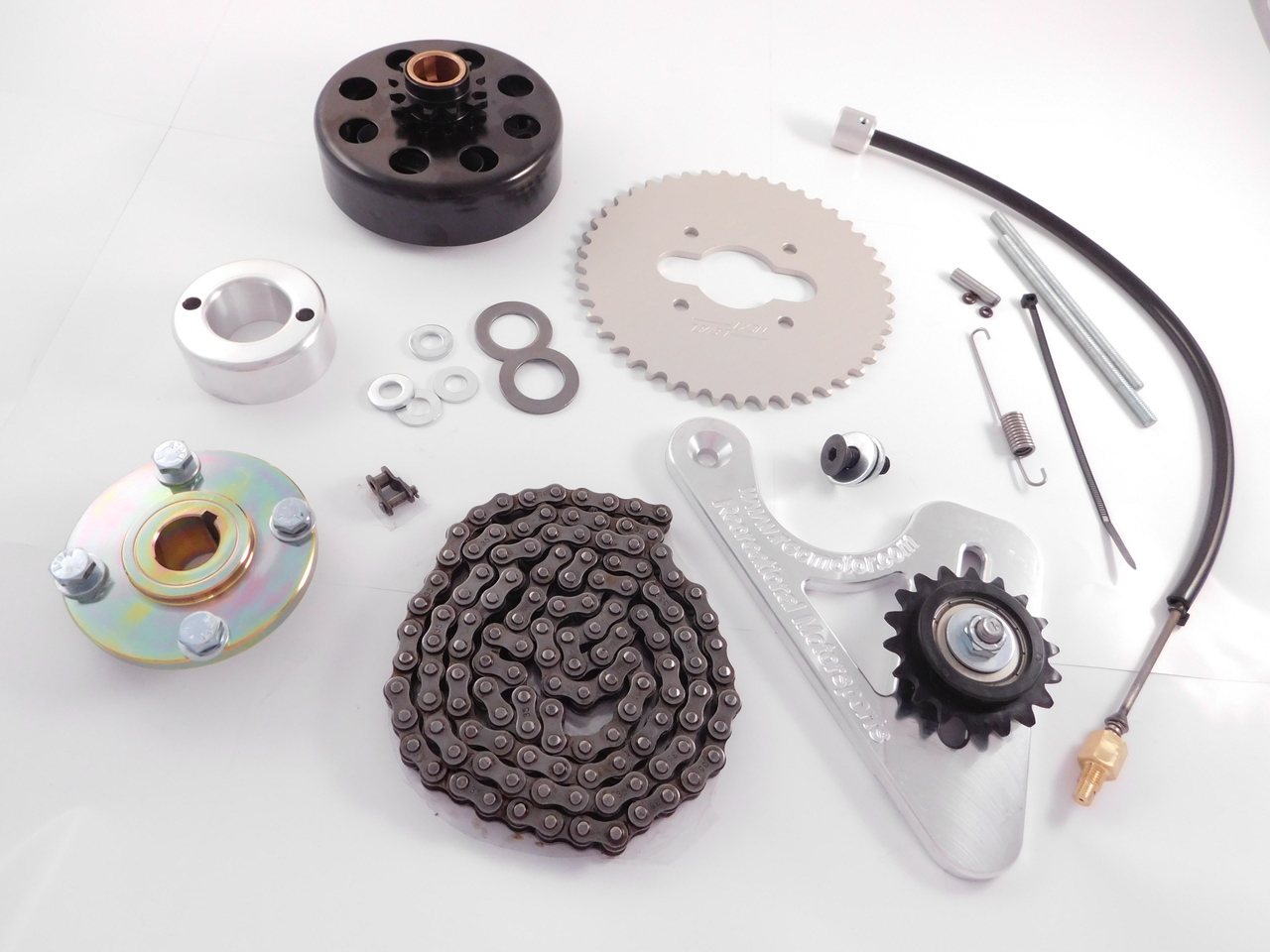 This Speed Kit was named for the type of rider you have. If your child is AGGRESSIVE and you need to jump up to the next level in speed and power, we've created the AGGRESSOR SPEED KIT" for you. Not only will it allow your child to hit the speed they want, it is upgradable to many stages. Kit Includes: Power Intake Kit which comes with an adjustable main jet to correct the lean fuel condition that 120's have from the factory, a Velocity Stack to give the engine more air then the restrictive factory air box, and the correct Governor Spring for more RPM's, a Standard Upgrade Replacement Clutch with Sprocket, Quick Change Hub, #35 Rear Sprocket and # Chain and a Chain Tensioner. |