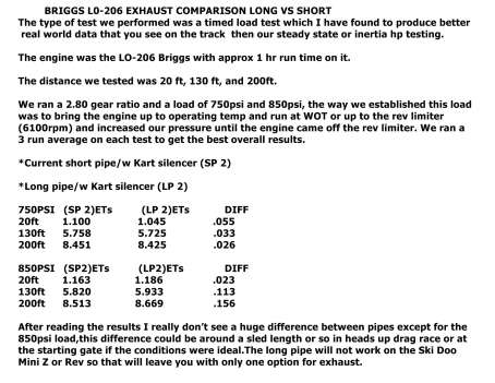 This is a ISR spec pipe designed for the LO 206 engine and was tested and approved by Briggs Motorsports for use in the new semi-pro and pro 120 snowmobile class. This pipe exits out the right hand side and will fit the Polaris, Arctic Cat, and Yamaha 120s.