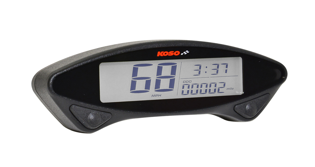 With its compact shape and waterproof connectors, the EX-02 Meter is the perfect meter for all off road applications. The illuminated back-light makes the instrument very easy to read even in the darkest conditions. The EX-02 Meter is equipped with all the basic functions such as speed, odometer, trip meter as well as hour meter, voltage, clock and stopwatch.