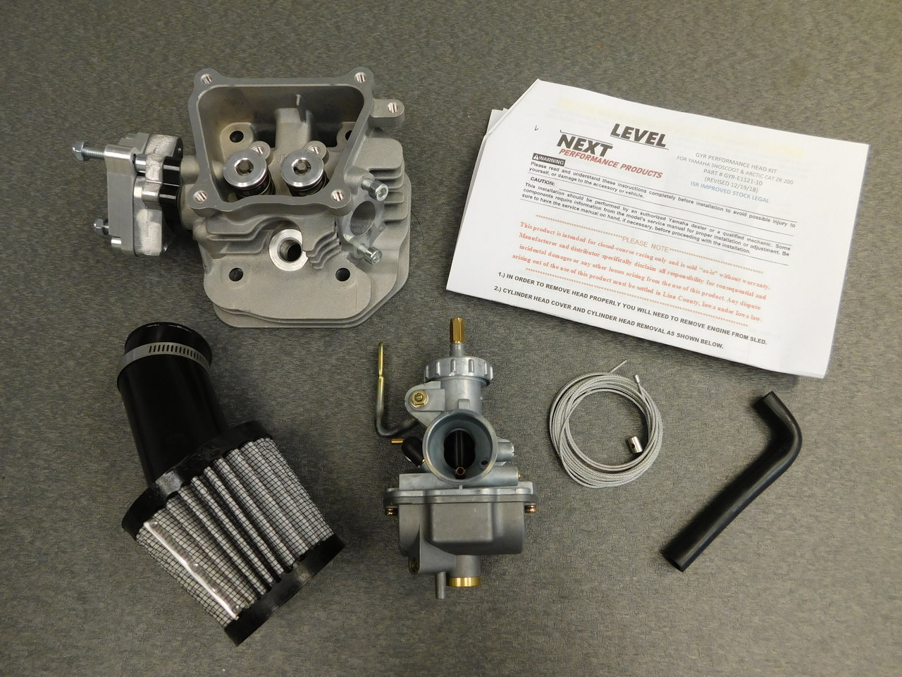 We are introducing our new ISR Race Legal IMPROVED STOCK CLASS ONLY Performance Head and Carb Kit for the Yamaha Snoscoot, Arctic Cat ZR 200 and Skidoo MXZ 200.